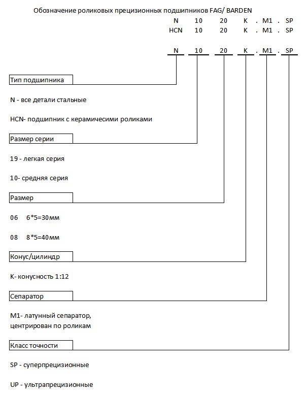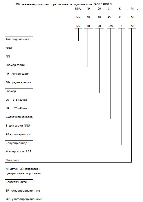 Обозначение роликовых прецизионных подшипников FAG/BARDEN
